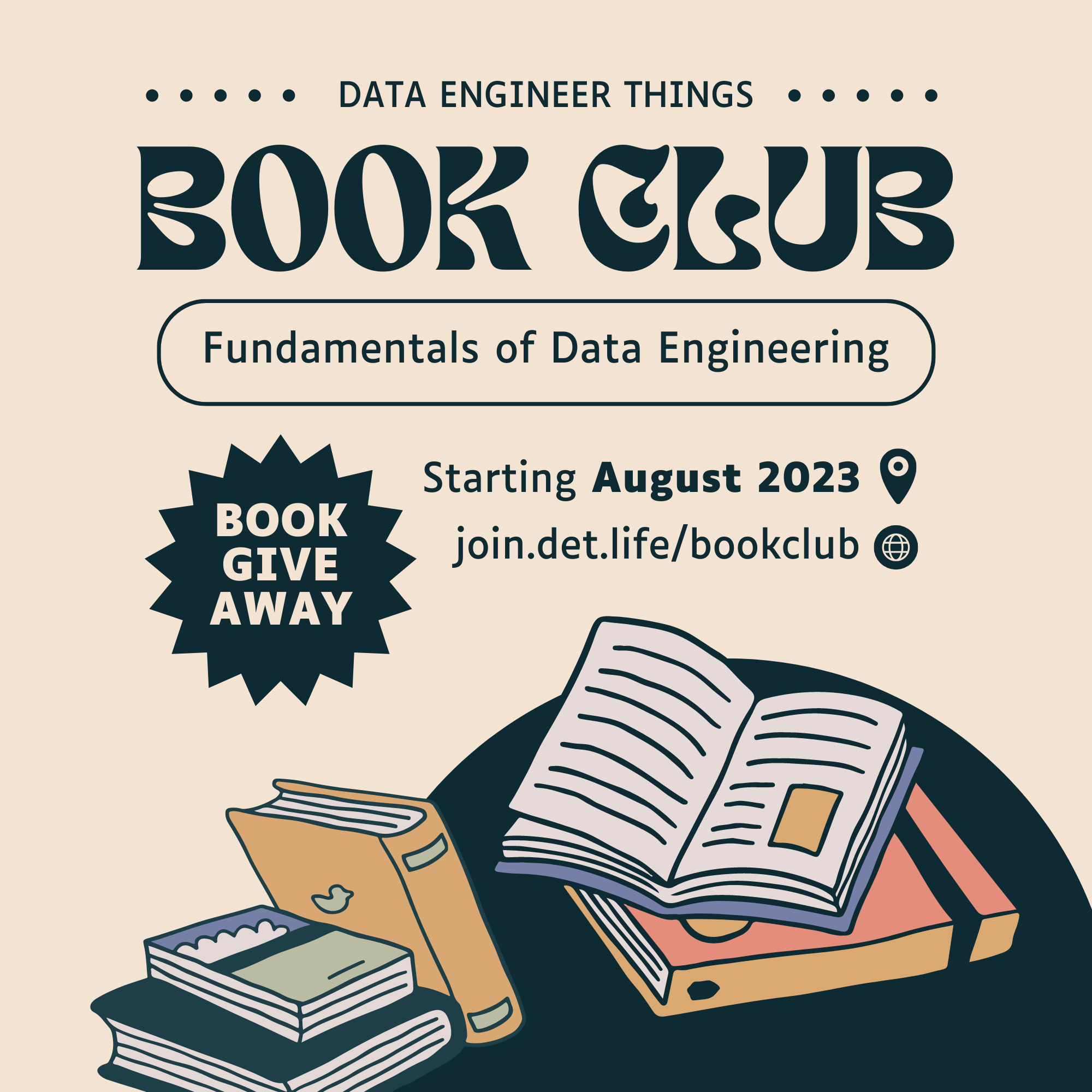 The first book we will read together is Fundamentals of Data Engineering, by Joe Reis and Matt Housley. No matter you are new to data engineering or an experienced data professional hoping to gain new perspectives, this book is a must-read.